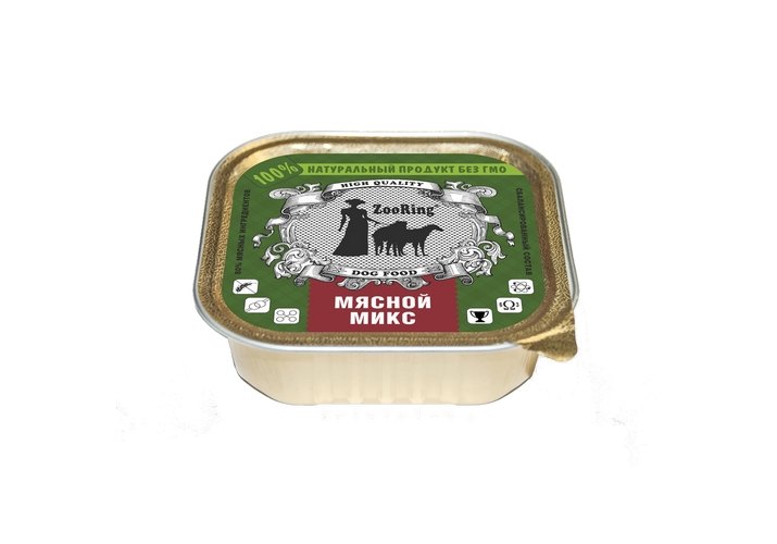 ZooRing Паштет Зооринг для собак Мясной микс (цена за упаковку) 100 г х 16 шт