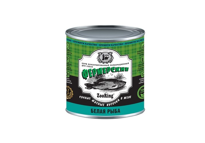 ZooRing Консервы Зооринг фермерские для собак кусочки мяса в желе Белая рыба (цена за упаковку) 850 г х 6 шт