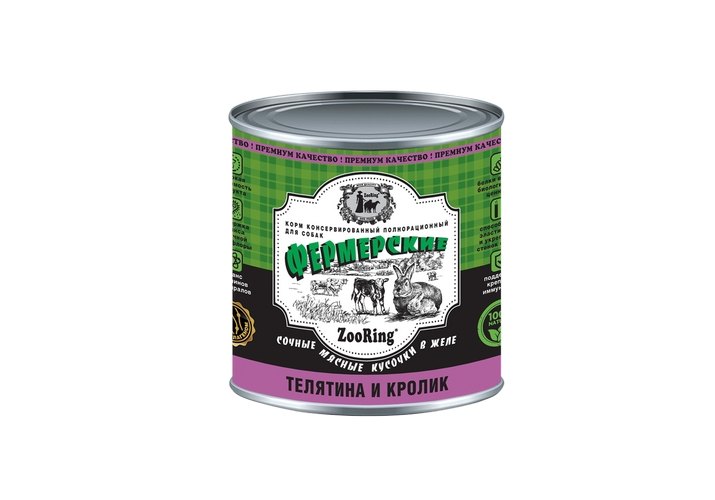 ZooRing Консервы Зооринг фермерские для собак кусочки мяса в желе Телятина и Кролик (цена за упаковку) 850 г х 6 шт