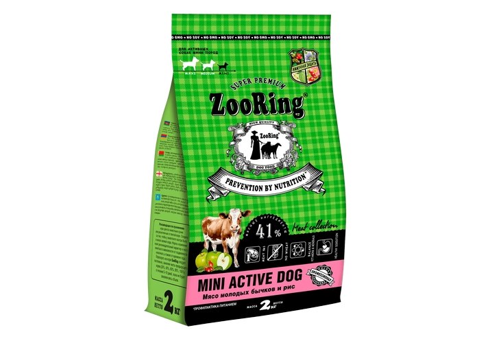 ZooRing Mini Active Dog Сухой корм Зооринг для взрослых собак мини пород Мясо молодых бычков и Рис 2 кг