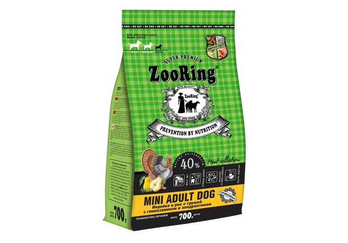 ZooRing Mini Adult Dog Сухой корм Зооринг для взрослых собак мини пород Индейка и Рис с грушей 700 г