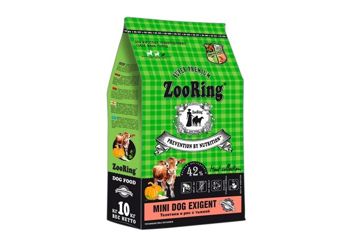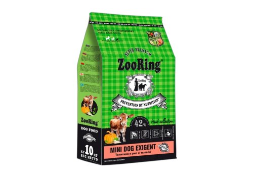 ZooRing Mini Dog Exigent Сухой корм Зооринг для взрослых привередливых собак мини пород Телятина и Рис с тыквой 10 кг