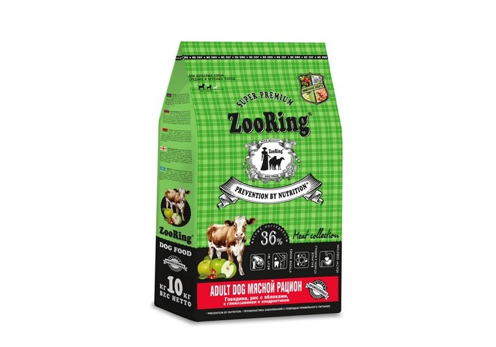 ZooRing Adult Dog Сухой корм Зооринг Мясной рацион для взрослых собак средних и крупных пород Говядина рис с яблоками 10 кг