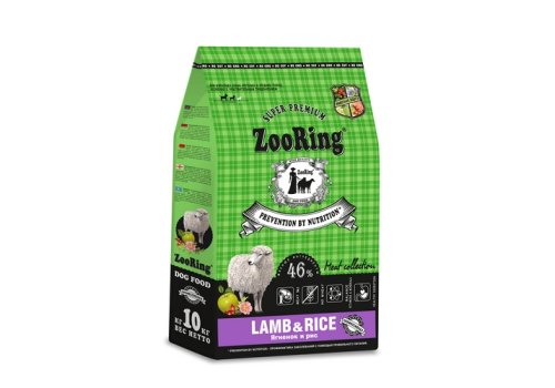 ZooRing Lamb&Rice Сухой корм Зооринг для взрослых собак средних и крупных пород с чувствительным пищеварением Ягненок и Рис 10 кг
