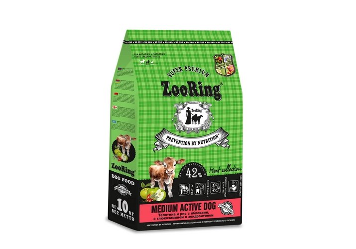 ZooRing Medium Active Dog Сухой корм Зооринг для молодых и взрослых собак средних пород Телятина и рис с яблоками 10 кг