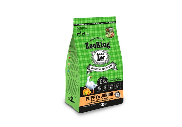 ZooRing Puppy&Junior Сухой корм Зооринг для щенков и юниоров средних и крупных пород Утка и рис с тыквой 2 кг