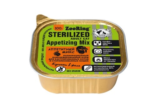 Zooring Консервы Зооринг для стерилизованных кошек кусочки в желе Аппетитный микс (цена за упаковку) 100 г х 16 шт
