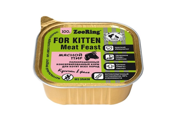 Zooring Консервы Зооринг для котят кусочки в желе Мясной пир (цена за упаковку) 100 г х 16 шт