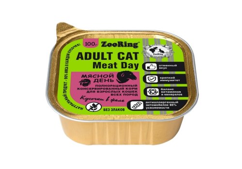 Zooring Консервы Зооринг для взрослых кошек кусочки в желе Мясной день (цена за упаковку) 100 г х 16 шт