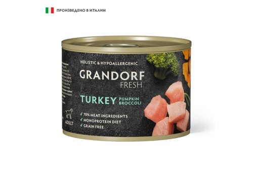 Grandorf Fresh Dog Turkey Pumpkin Broccoli Pate Консервы Грандорф для собак Паштет из индейки с тыквой и брокколи (цена за упаковку) 200 г х 6 шт