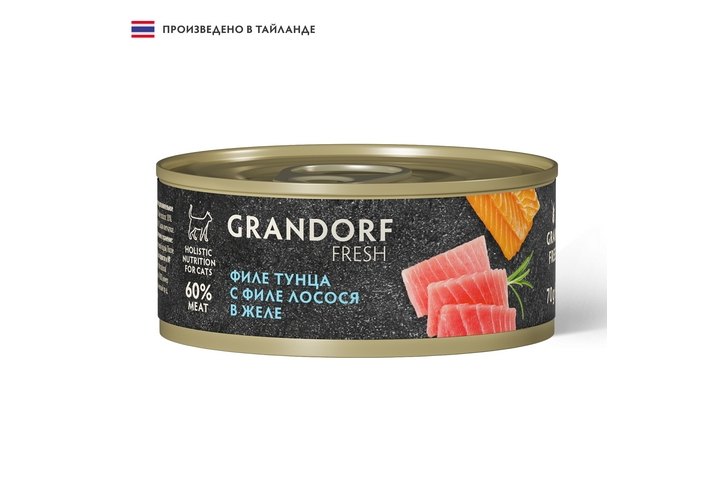 Grandorf Fresh Tuna With Salmon In Jelly Консервы Грандорф для кошек Филе тунца с филе лосося в желе (цена за упаковку) 70 г х 6 шт