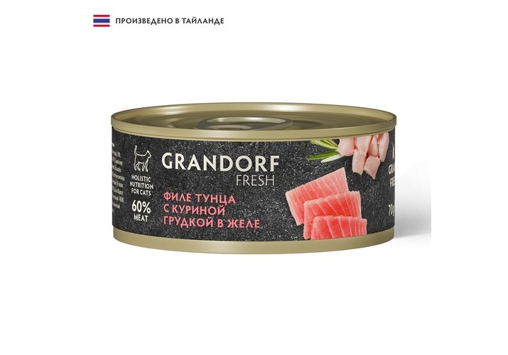 Grandorf Fresh Tuna With Chicken In Jelly Консервы Грандорф для кошек Филе тунца с куриной грудкой в желе (цена за упаковку) 70 г х 6 шт