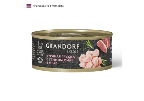 Grandorf Fresh Chicken With Duck In Jelly Консервы Грандорф для кошек Куриная грудка с утиным филе в желе (цена за упаковку) 70 г х 6 шт