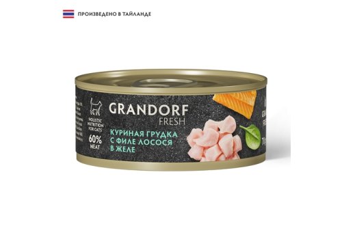 Grandorf Fresh Chicken With Salmon In Jelly Консервы Грандорф для кошек Куриная грудка с филе лосося в желе (цена за упаковку) 70 г х 6 шт