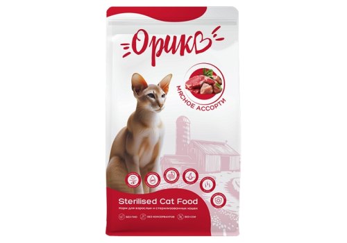 Орико Sterilised Сухой корм для взрослых и стерилизованных кошек Мясное ассорти 1,5 кг