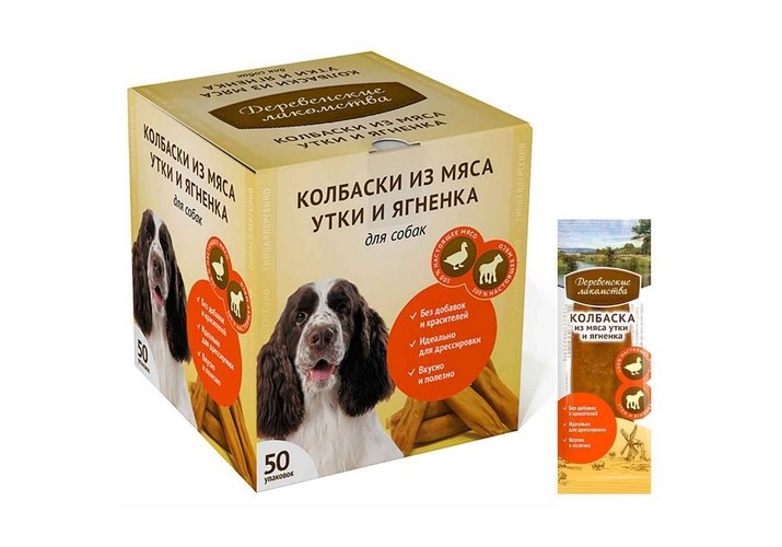 Деревенские лакомства Мини колбаски для собак из мяса Утки и ягненка (цена за упаковку) 8г х 50шт