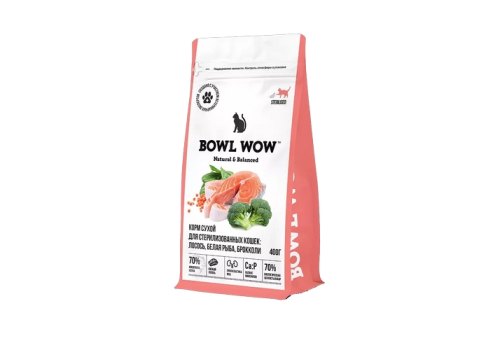 BOWL WOW Сухой корм Боул Вау для Стерилизованных кошек с Лососем белой рыбой и брокколи 400 г