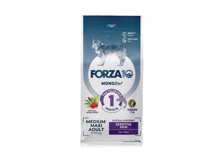 Forza10 MonoDiet Sensitive Skin Диетический сухой корм Форза для взрослых собак средних и крупных пород c Чувствительной кожей 10 кг