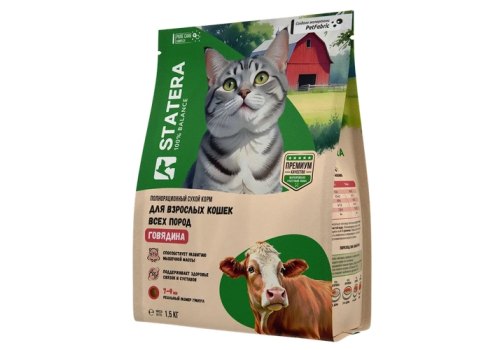 Statera Сухой корм Статера для взрослых кошек с Говядиной 1,5 кг
