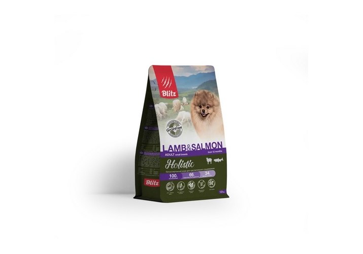 Blitz Holistic Adult Small Breeds Lamb & Salmon Сухой Беззерновой корм Блиц для собак мелких пород Ягненок Лосось 1,5 кг