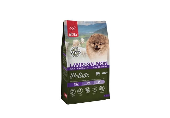 Blitz Holistic Adult Small Breeds Lamb & Salmon Сухой Беззерновой корм Блиц для собак мелких пород Ягненок Лосось 8 кг