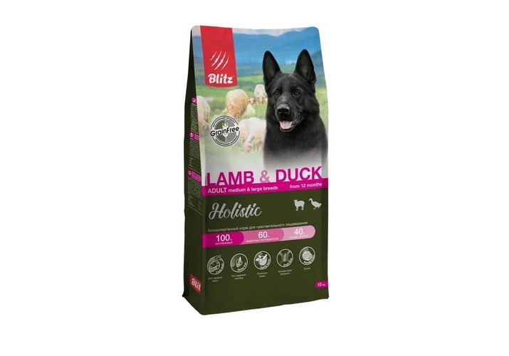 Blitz Holistic Adult Medium & Large Breeds Lamb & Duck Сухой Беззерновой корм Блиц для собак средних и крупных пород Ягненок Утка 12 кг