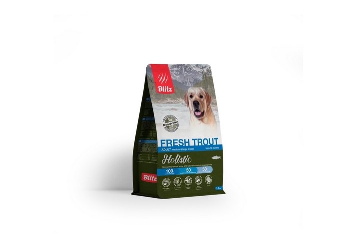 Blitz Holistic Adult Medium & Large Breeds Fresh Trout Cухой корм Блиц Монопротеиновый для собак средних и крупных пород со свежей Форелью 1,5 кг