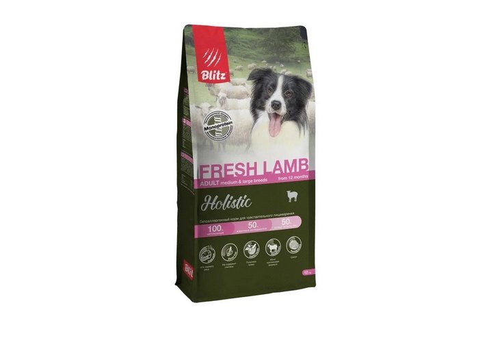 Blitz Holistic Adult Medium & Large Breeds Fresh Lamb Cухой корм Блиц Монопротеиновый для собак средних и крупных пород со свежей Говядиной 12 кг