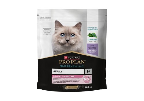 PRO PLAN NATURE ELEMENTS Сухой корм ПРО ПЛАН для взрослых кошек при чувствительном пищеварении с индейкой 400 г