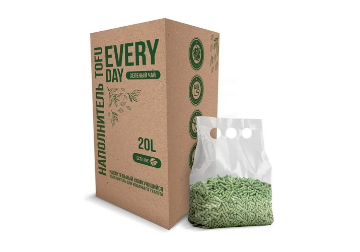 Наполнитель тофу обладает высокой способностью поглощать запахи и жидкость, что помогает поддерживать чистоту в доме и облегчает уход за лотком. Благодаря специальной обработке, наполнитель EVERYDAY TOFU BOX не просто борется с неприятным запахом, а уничтожает его.
