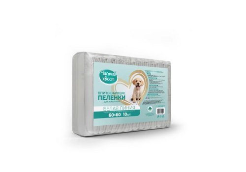 Чистый хвост Впитывающие пеленки для животных белая линия 60 х 60 см 10 шт