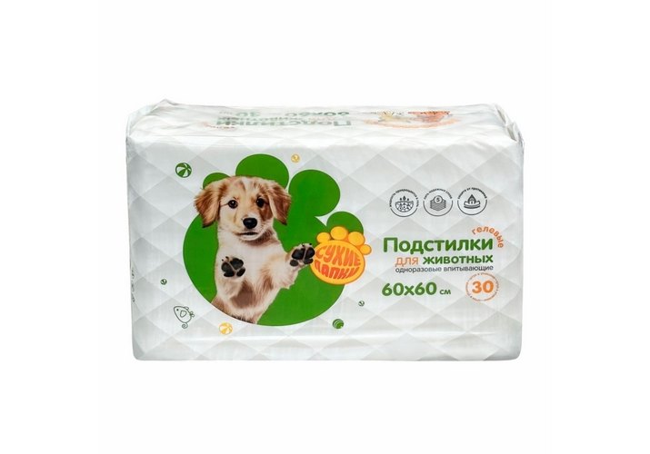Доброзверики Сухие лапки Подстилки гелевые впитывающие для животных 30шт 60х60 см