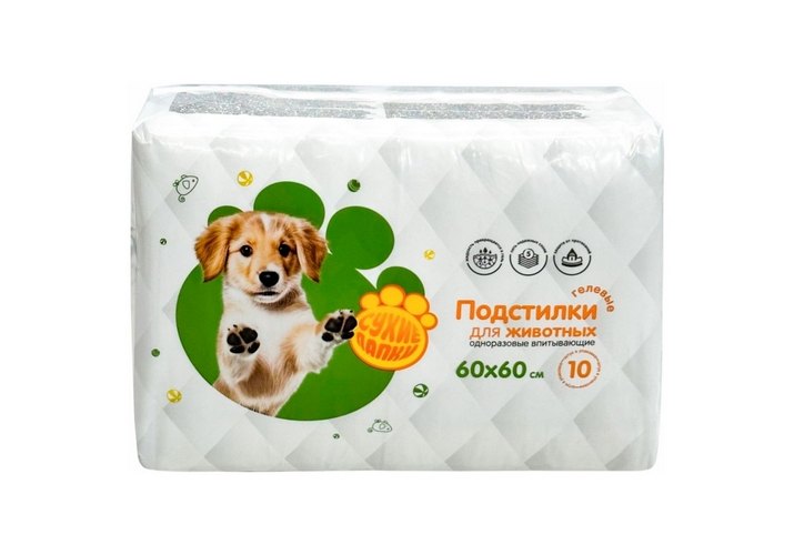 Доброзверики Сухие лапки Подстилки гелевые впитывающие для животных 10шт 60х60 см