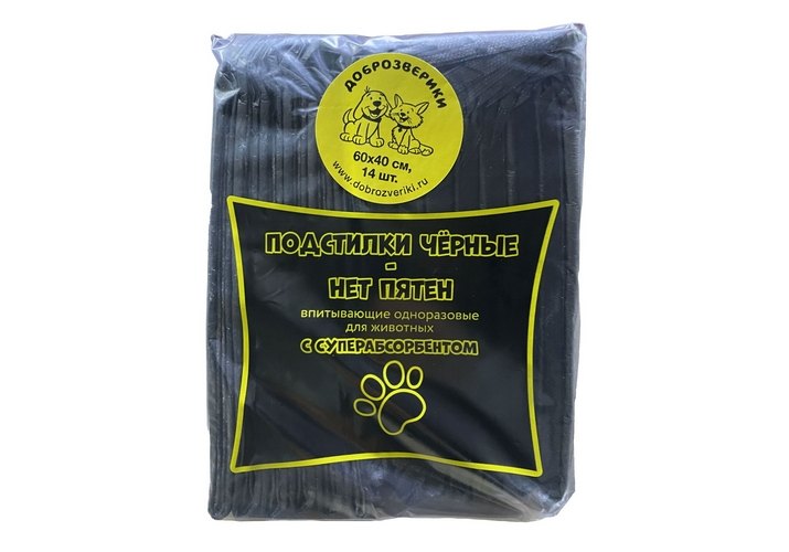 Доброзверики Подстилки впитывающие для животных с Суперабсорбентом Черные 60х40см 14шт