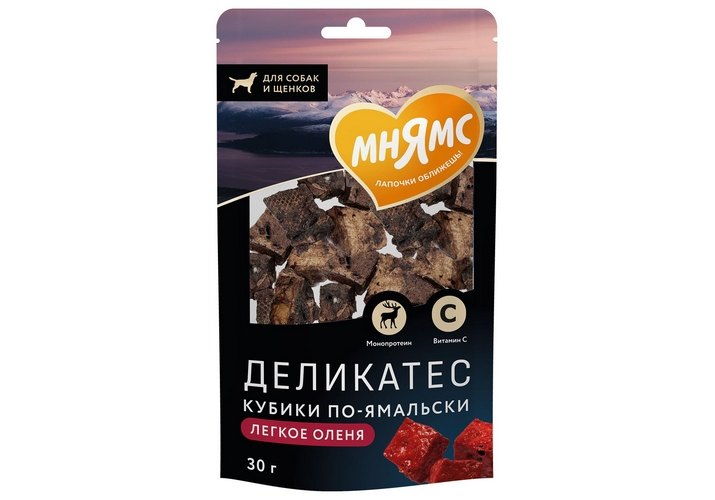 Мнямс Лакомство Деликатес для собак из легкого северного оленя Кубики по-ямальски 30 г