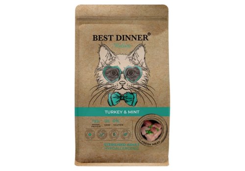 Best Dinner Cat Holistic Sterilised Adult Hypoallergenic Turkey & Mint Сухой корм Бест Диннер для Стерилизованных кошек Гипоаллергенный Индейка с Мятой 1,5 кг