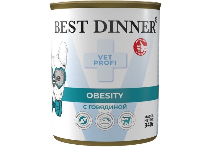 Best Dinner Vet Profi Obesity Диетический корм Бест Диннер для собак с Говялиной (цена за упаковку) 340г х 6 шт
