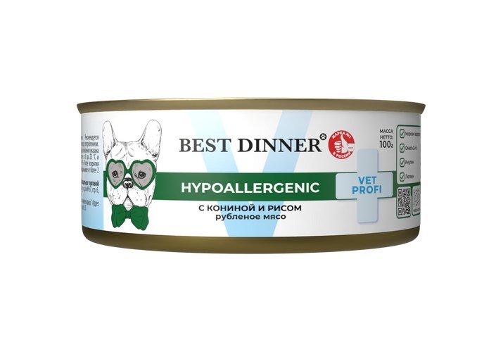 Best Dinner Exclusive Vet Profi Hypoallergenic Консервы Бест Диннер для собак с Кониной и рисом (цена за упаковку) 100г х 12шт