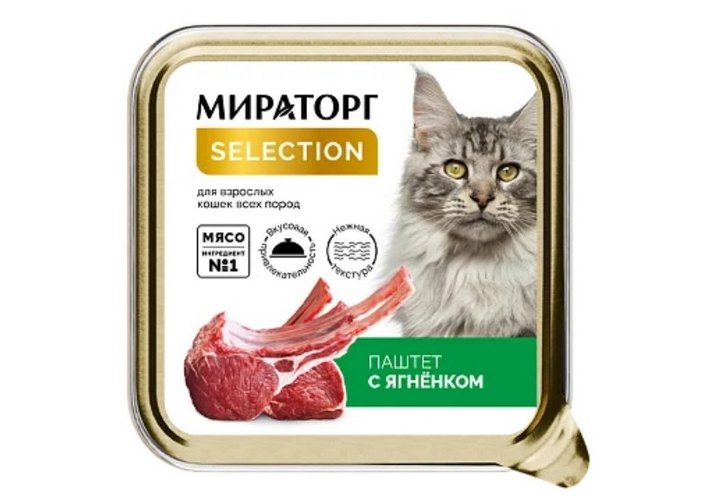 Мираторг Selection полнорационный влажный корм с мясом ягнёнка для взрослых кошек всех пород 100 г.