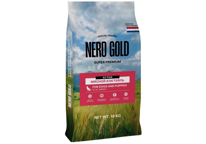 Nero Gold Сухой корм Неро Голд для активных собак и щенков всех пород Мясной коктейль 18 кг