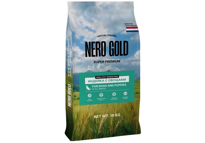 Nero Gold Сухой корм Неро Голд для собак и щенков всех пород с чувствительным пищеварением Индейка с овощами 18 кг