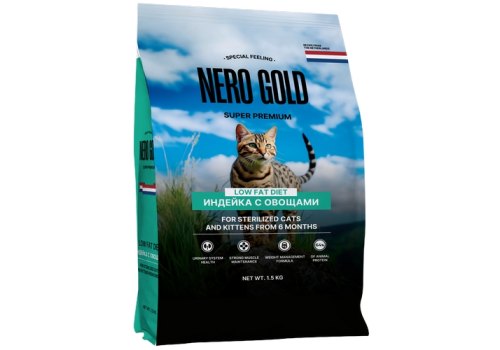 Nero Gold Sterilized Сухой корм Неро Голд для котят и стерилизованных кошек Индейка с овощами 1,5 кг