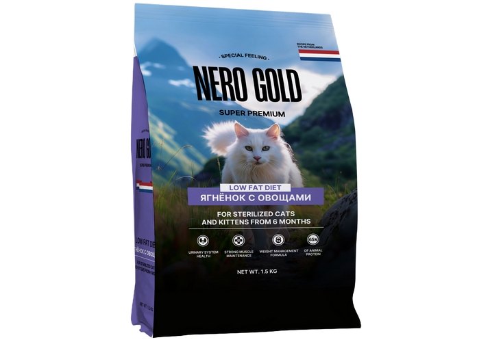 Nero Gold Sterilized Сухой корм Неро Голд для котят и стерилизованных кошек Ягненок с овощами 1,5 кг