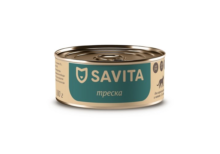 Savita Влажный корм Консервы Савита для кошек всех возрастов Треска (цена за упаковку) 100г х 12шт