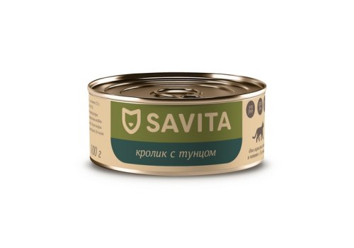 Savita Влажный корм Консервы Савита для кошек всех возрастов Кролик с тунцом (цена за упаковку) 100г х 12шт