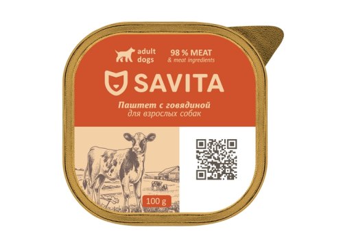 Savita Паштет Савита для взрослых собак со свежей Говядиной 98% мяса (цена за упаковку) 100г х 14шт