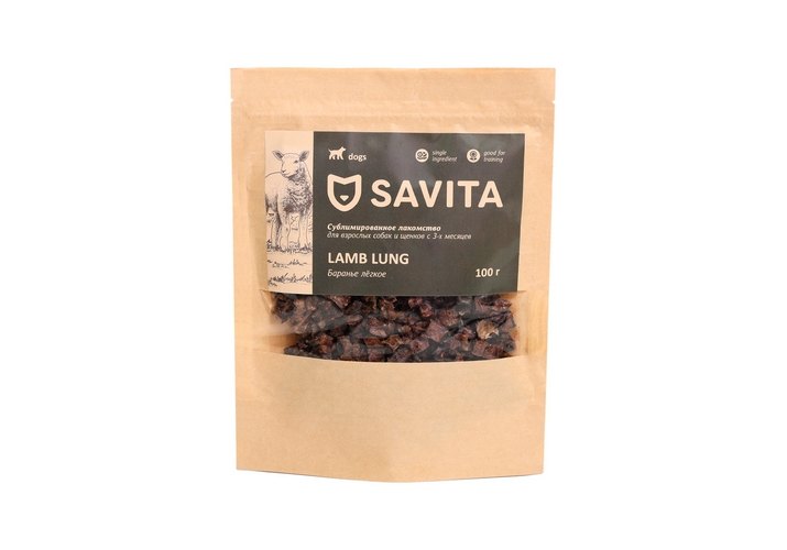 Savita Лакомство Савита для взрослых собак и щенков с 3-х месяцев Баранье легкое 100 г