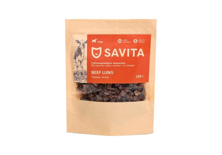 Лакомства Savita - это 100% натуральный продукт, который не содержит искусственных консервантов, красителей, сои и ГМО. Благодаря технологии сублимации сохраняют больше питательных веществ и вкусовых качеств свежих ингредиентов. Говяжье легкое - источник легкоусвояемого белка и полезных жиров, что делает его идеальным угощением для собак всех пород.