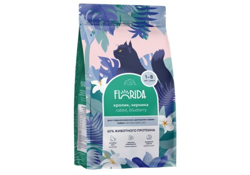 Florida Indoor Sterilized Adult Rabbit & Blueberry Сухой корм Флорида для Домашних стерилизованных кошек Кролик черника 400 г