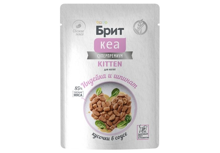 Brit Care Kitten Паучи Брит Кеа для котят Индейка и шпинат (цена за упаковку) 85г х 12шт